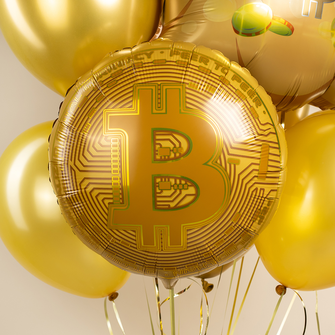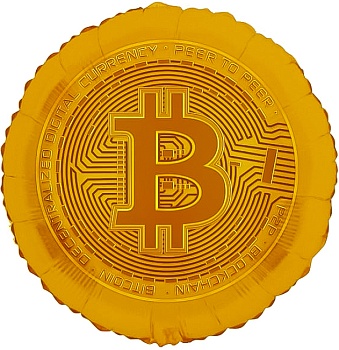 Шар (18''/46 см) Круг, Биткоин, Золото, 1 шт. в уп. (цв.этик.)