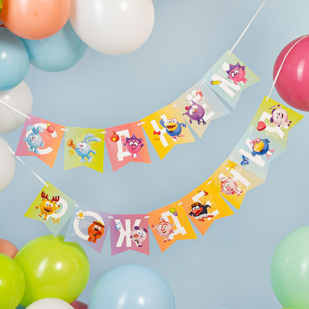 Гирлянда Флажки, Смешарики, С Днем Рождения!, 1 упак.